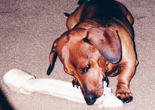 One day Zack figured out he could hit a tennis ball with the end of the bone then lean around and hit it with the other end. And off he went! By the time he had the game down pat, there was an entire course around the dining room and living room with barriers he had to go around to get his own doggie-points, knocking that ball with either end of the huge bone until: Presto! He’d land it under my husband’s recliner. Goal scored! Two points! He looked so proud. And of course he had to treat himself to a good chew on said bone.