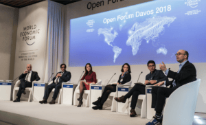 IN THE PHOTO: DEF Cofounder Pia Mancini at Davos Feb 2018. CREDIT: Democracy Earth Foundation