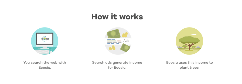 In the Photo: How Ecosia works. Photo Credit: Ecosia