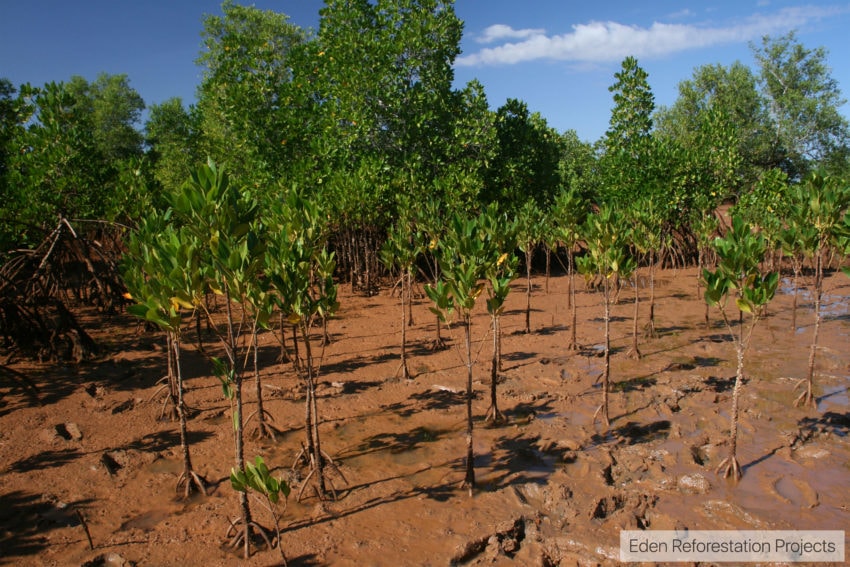 In the Cover Photo: Checking on newly planted trees. Photo Credit: Ecosia