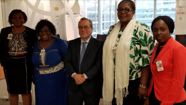 In the photo: At a USAID conference this month (Nov) in Washington DC, US talking about EdoBEST: (Middle) Jamie Saavedra head of Education at the World Bank with (L) Bridge’s Adesuwa Ifedi, EdoBest Teacher Mabel Omionawele, Dr. Joan Oviawe Chairman of Edo SUBEB and; EdoBEST teacher Vivian Iguisi Photo credit: Bridge