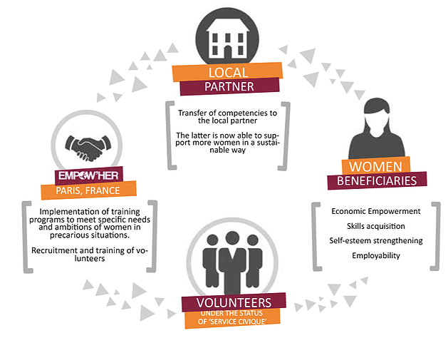 Both student groups on those six-month missions came to the same realization: no training and mentoring system existed to teach entrepreneurship to women. The activities in which they were involved weren’t wealth- and job-creating. After these pilot missions in 2012, we decided to team up and create first the association in 2013, and now the NGO Empow’her.