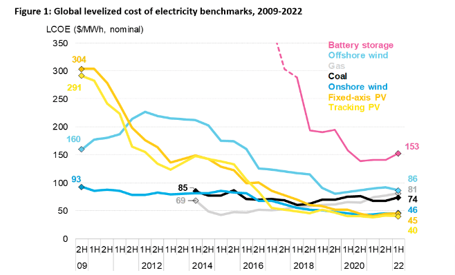 Driven by the increasing cost of materials, freight, fuel and labour, the cost of new-build onshore wind has risen 7% year on year, and fixed-axis solar has jumped 14%. Thus, the global benchmark levelized cost of electricity (LCOE) – the price at which the electricity generated should be sold in order for the system to break even at the end of its lifetime, used to plan investments and to compare different power sources – has temporarily retreated to where it was in 2019.