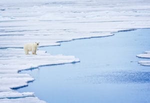 In The Photo: Polar Bear Standing on Edge of Sea Ice. Photo Credit: Shutterstock-jo Crebbin