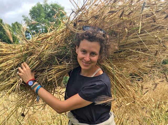 In The Photo: Environmentalist Severine von Tscharner Fleming Carrying Harvested Grass . Photo Credit: Agrarian Trust