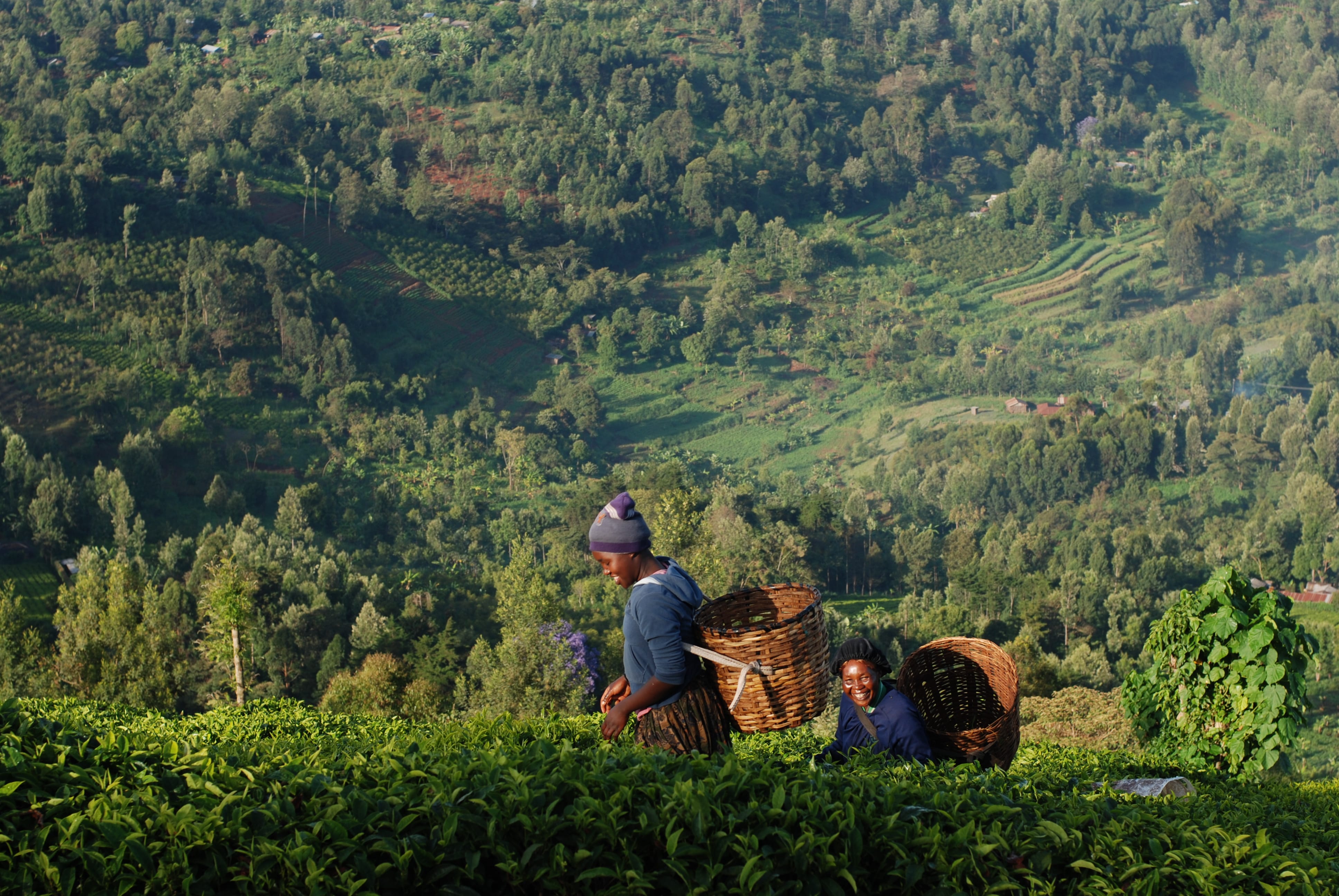 In the photo: Farmers harvest tea on a farm in Kenya– photo credit to Kamweti Mutu via flickr