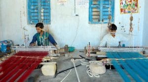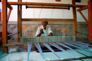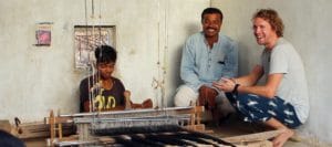 In the photo: An Ethnotek artisan weaving from India Credit: Ethnotek Bags