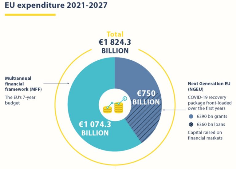 This was broadly seen as a major breakthrough. It marked the first time (in quite a while) that Europe truly came together and decided on a hefty plan: A €1 824.3 billion package (over $2 trillion) combining the multiannual financial framework (MFF) and an extraordinary recovery effort, Next Generation EU (NGEU), to pull out of the COVID crisis and rebuild the economy on two fronts, green and digital: