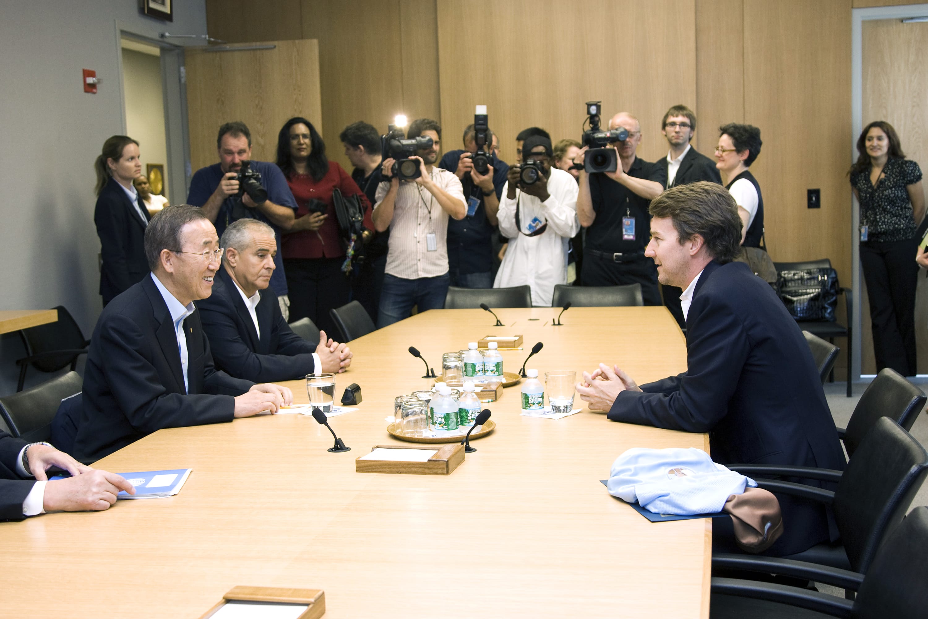 In the photo: Secretary-General Meets Ed Norton, New Goodwill Ambassador for Biodiversity. Secretary-General Ban Ki-moon (left) meets with actor Edward Norton (seated right), newly-appointed UN Goodwill Ambassador for Biodiversity.08 July 2010. United Nations, New York. (source UN / multimedia)