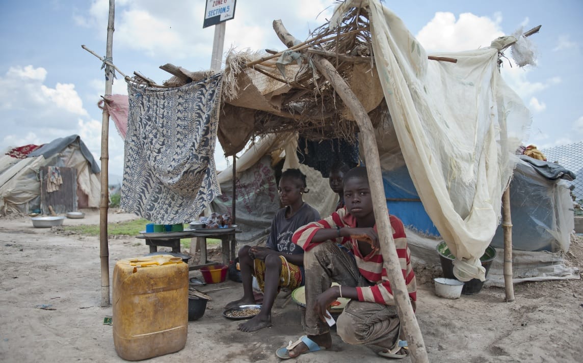 In the photo: IDP Camp at M’poko Airport, Bangui. A family in the camp for internally displaced persons (IDPs) located at M’poko Airport in Bangui, capital of the Central African Republic. 06 June 2014. Bangui, Central African Republic.