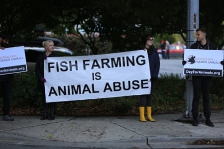 In the Photo (above): Protesters near the American Gold Seafood Company, Seattle 2013 Credit: Living Humane