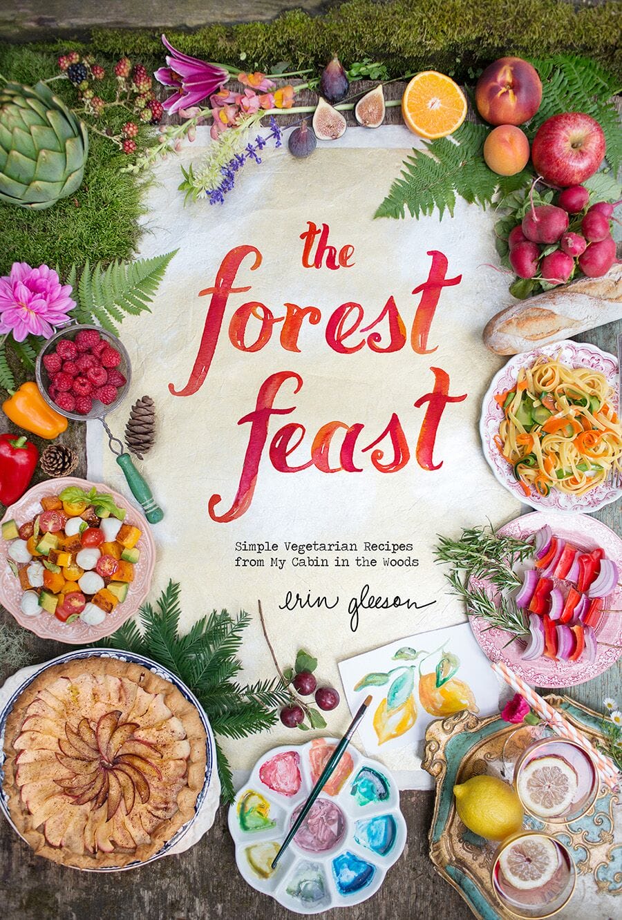 Erin Gleeson is the New York Times best-selling author of The Forest Feast, a vegetarian cookbook based on her blog of the same name. Erin worked as a food photographer in New York City for several years before moving to a cabin in the woods near San Francisco in 2011 which inspired her blog and book. The Forest Feast is a unique cookbook/art book blend, featuring simple, colorful, vegetable based recipes that are presented visually, with minimal text. Erin’s own photography, watercolor illustration and hand-lettering guide you through the steps to make each dish. The Forest Feast stationary line was released in 2015 with stationery items like journals and art prints, featuring Erin’s watercolors and photography. She will release two additional cookbooks, The Forest Feast for Kids and The Forest Feast Gatherings in 2016. Erin also teaches photography in Continuing Studies at Stanford University and works as a freelance food photographer and illustrator.
