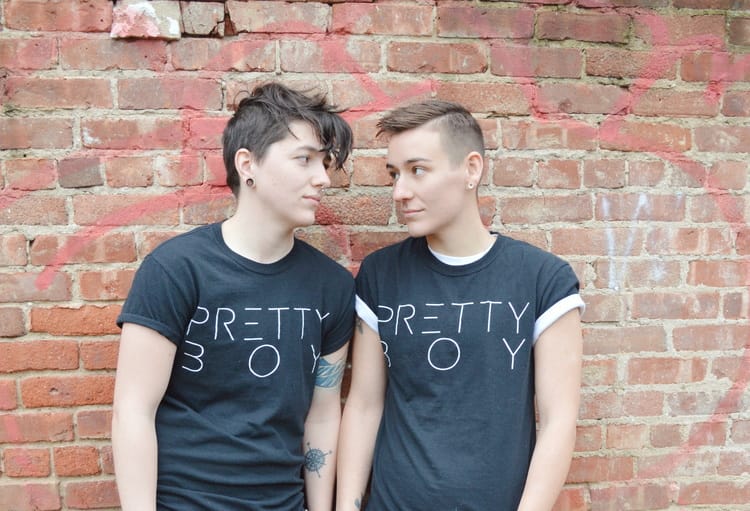 Chris: I always identified as a pretty boy even before I identified as trans and I was just a very masculine lesbian. We actually made a bunch of shirts for PRIDE one year and I decided to make a shirt that said pretty boy. At PRIDE I had like a hundred people coming up to me asking where I got it. It was anything from gay men to straight men to lesbian to trans guys. It was kind of a realization for both of us that this wide spectrum of people could identify as a pretty boy and that was very unifying. So we thought “we need to make the shirt and sell it to people.” It seemed like such as cool idea. So then we made a simple, black and white classic shirt that we sell all the time. And we just love that shirt. People constantly email us and say “every time I wear this I feel so confident.” So this is the story behind the quick little PRIDE shirt that I made that everybody seemed to like.