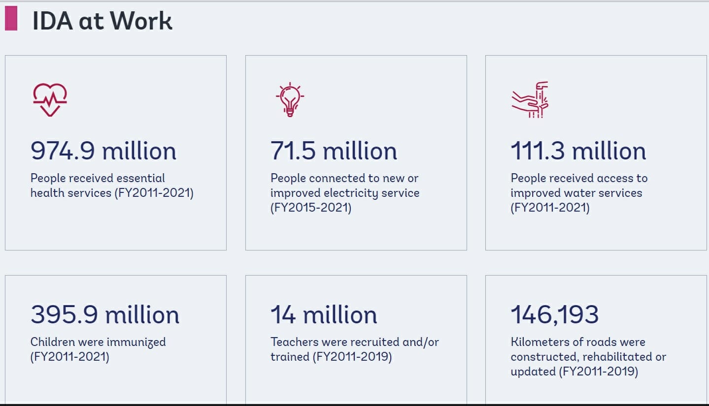 The objectives, as expected, are to support all IDA countries in the roll-out of Covid-19 vaccinations, including strengthening health care systems and pandemic preparedness. This will build on the strong achievements of the previous financing package, IDA19, which saw nearly 70 countries benefiting from IDA financing for vaccines, health professionals’ training, and hospital equipment.