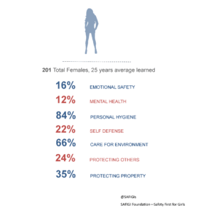 Systematic and biological differences have to be factored in when educating girls. If equity is not employed in education, inequalities, injustices, and oppression of girls will continue unchecked. Safety Education can fill these education gaps and will result in healthier communities, higher life expectancy, improved access to health, gender equality, and safer communities. (SAFIGI, 2017)