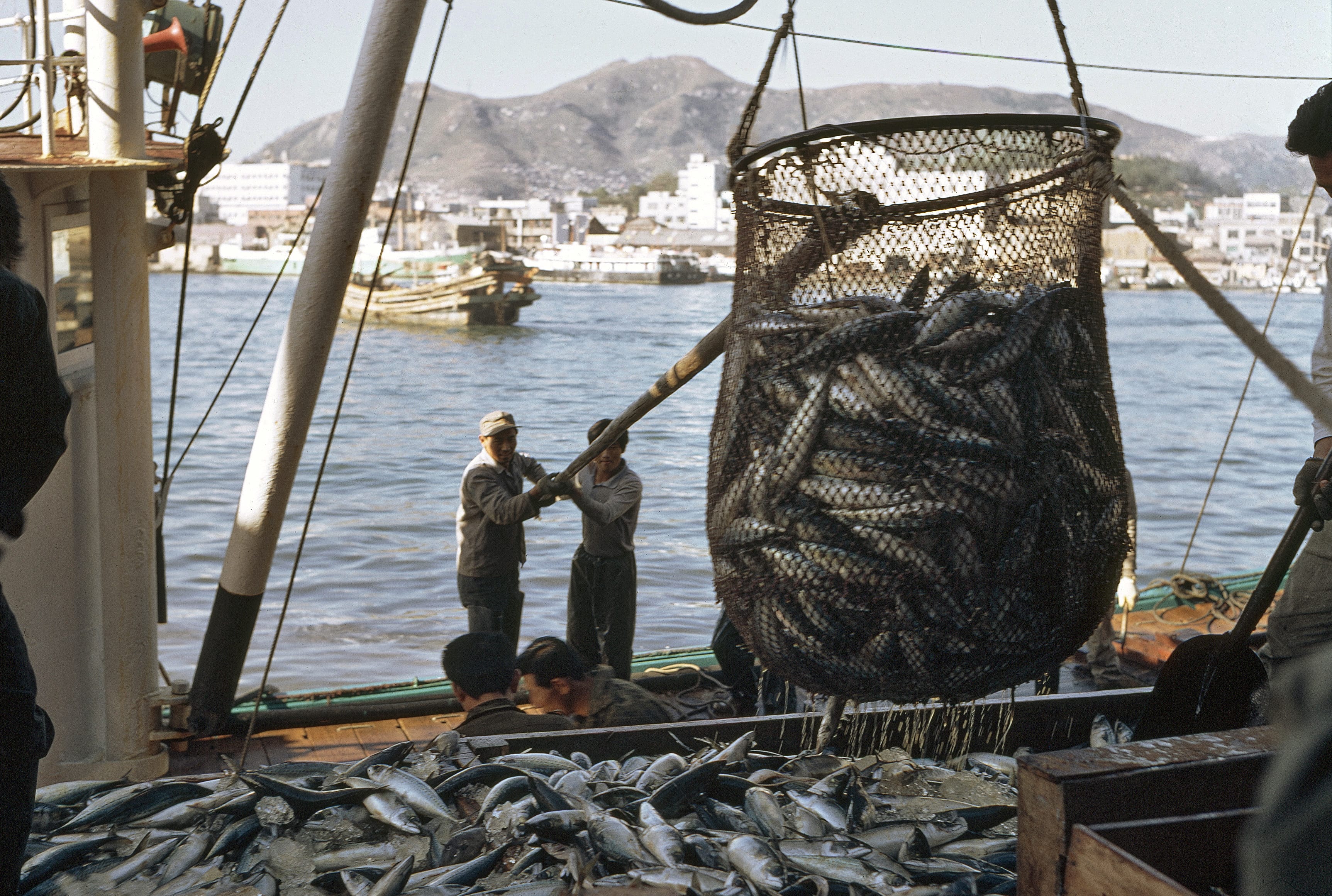 In the Photo: Unloading mackerel at fish market Photo Credit: UN Photo/M Guthrie