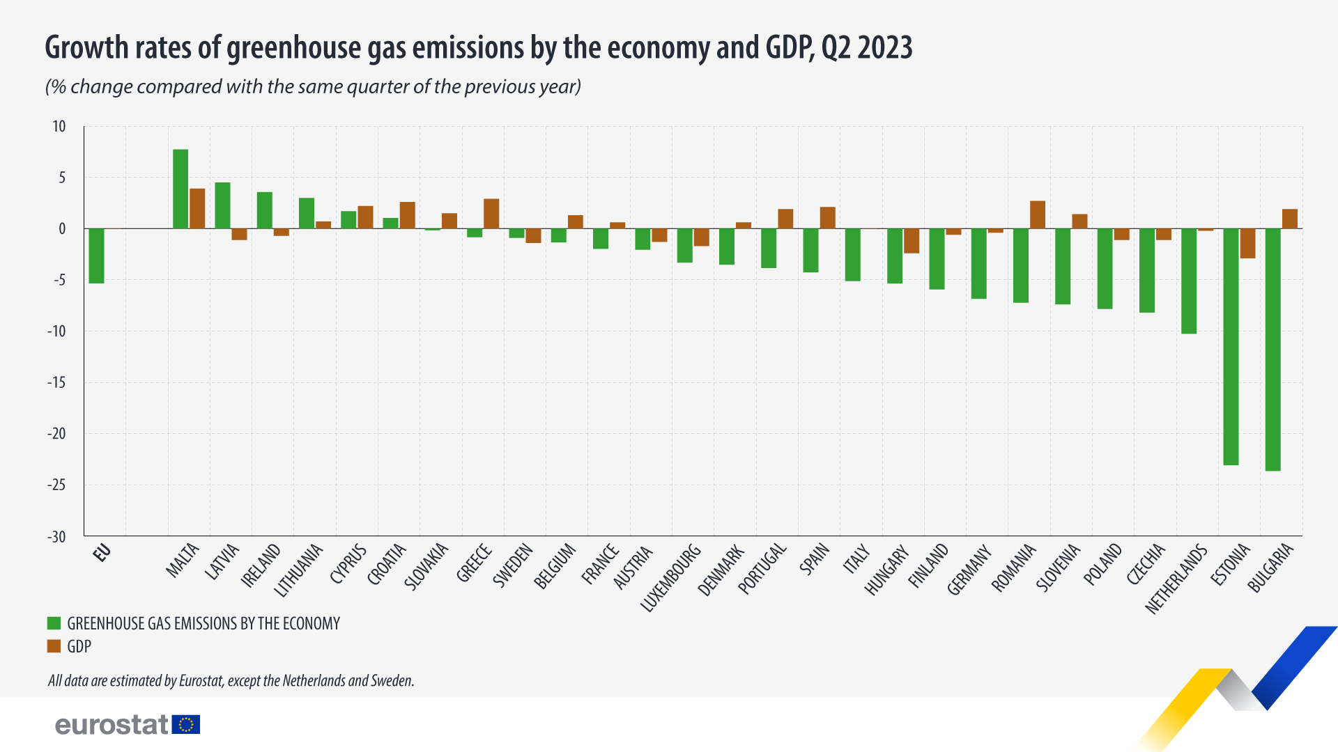 Of the 27 EU member states, 21 recorded a decline in greenhouse gas emissions during the second quarter of 2023 compared to the same period in 2022.