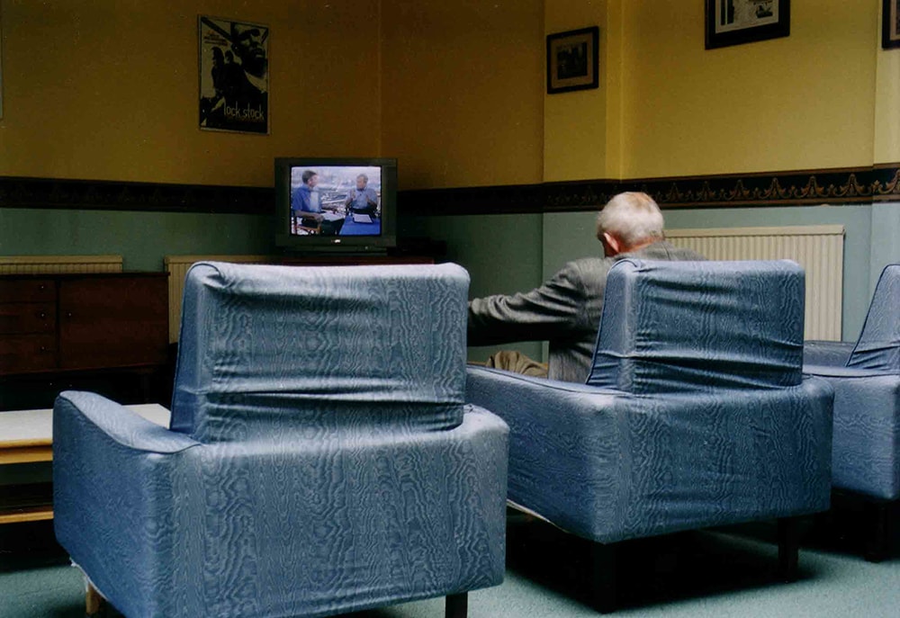 The television room in the ex forces hostel, east London, March 2001.