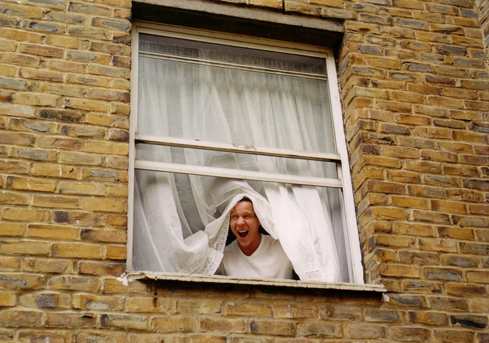 A homeless ex-soldier looking out the window of an ex-serviceman’s hostel in East London, 2001.