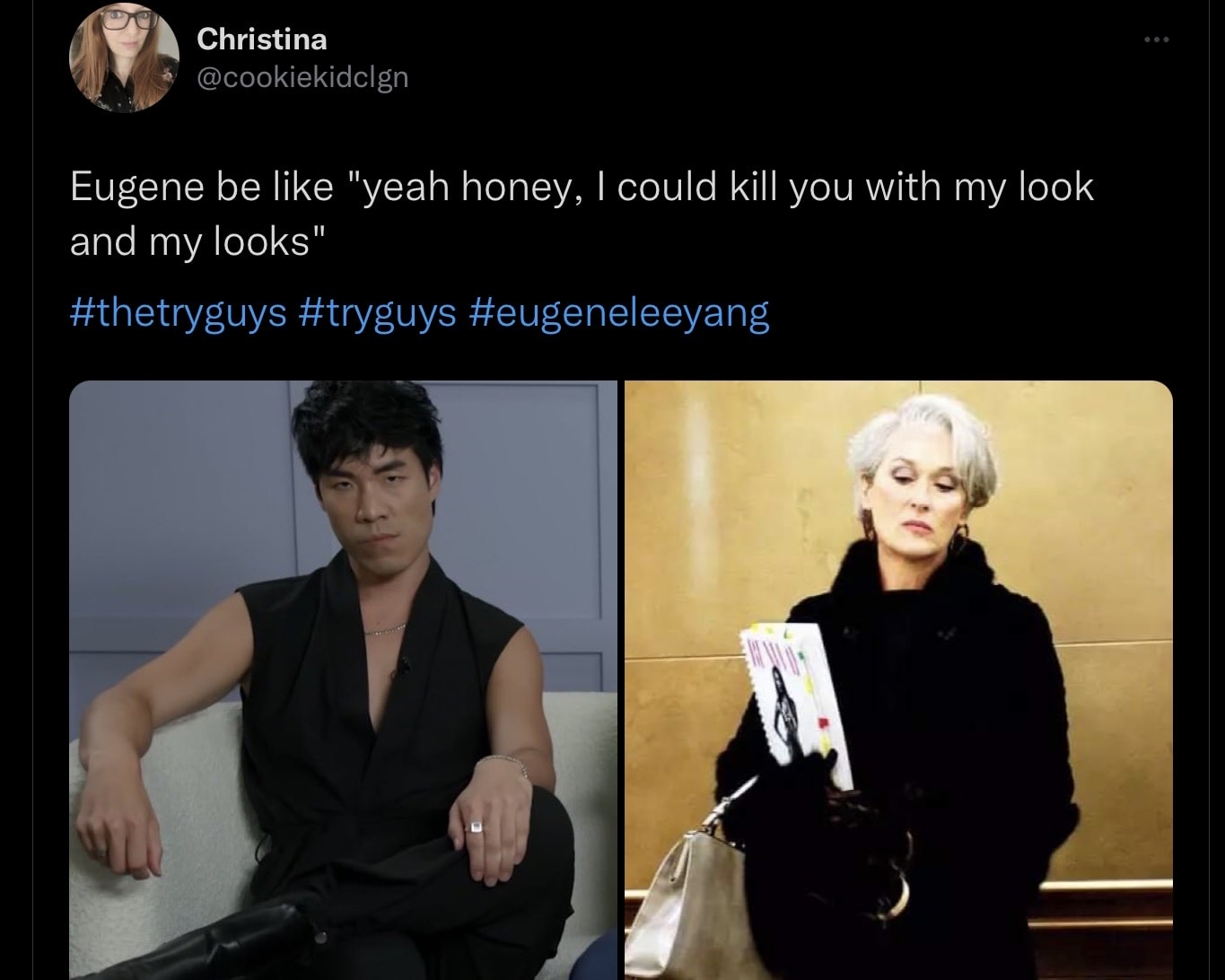 Part of the online fanfare has been around Try Guys member Eugene Lee Yang, and his demeanour in the short and tense statement that the Try Guys (sans Fulmer) released on their YouTube channel. You see, Eugene, having front-row seats to the burning down of his brand, appeared more than slightly annoyed in this video, and the fans noticed. They noticed, and then proceeded to perpetuate insanely dated stereotypes about the sassy, gossipy nature of the archetypal queer man by making Eugene’s annoyance a full-fledged talking point. It is here that social media hypocrisy begins to come apart at the seams, with obliviousness starting to wane as an excuse.