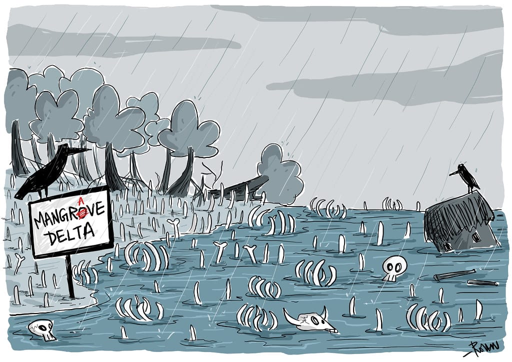 But Vikram and Anita are not the only characters we meet. On a small island in the great delta region, 100km away from the big city, Mou and her husband are just getting by. The delta region is full of farms and fisheries that supply food for the big city but are struggling in the face of climate change.