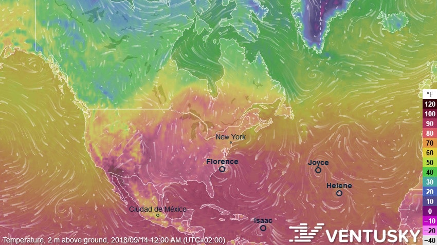 Available for free both on iOS and Android and created by a team based in the Czech Republic, Ventusky aims to show how the weather on earth works as an interdependent system. This means that potentially a hurricane hitting the US east coast could lead to a weather change in other areas like Europe. The map shows several things including wind direction and speed, temperature, waves and humidity and is really easy to understand.