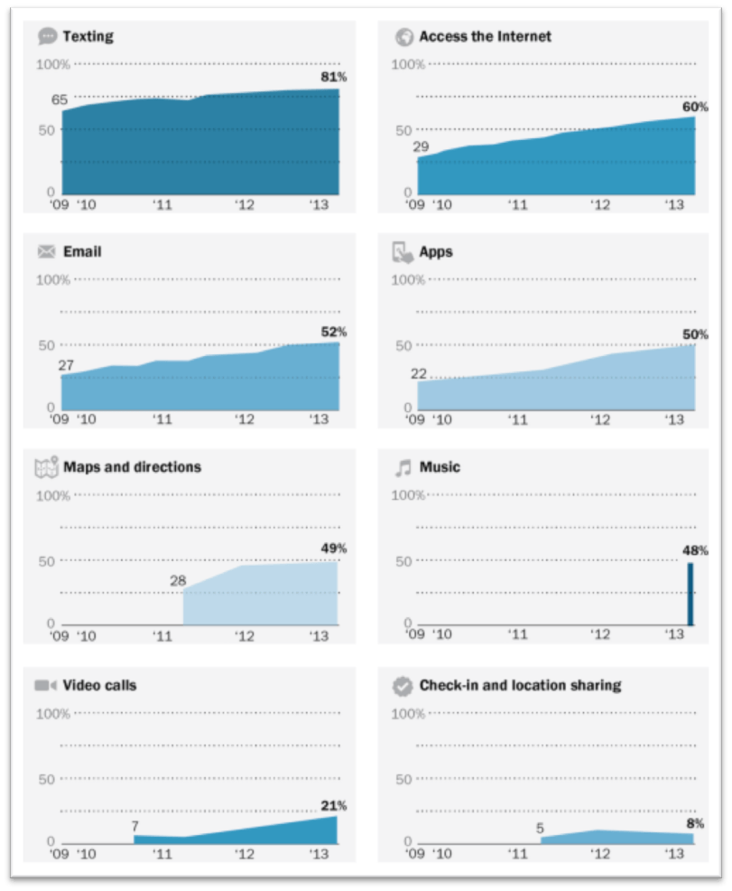 Duggan, M. Pew Research Center, 2013. Cell Phone Activities 2013. [online] Washington: Pew Research Center. Available from: http://www.pewinternet.org/2013/09/19/cell-phone-activities-2013/ [Accessed 5 May 2015].