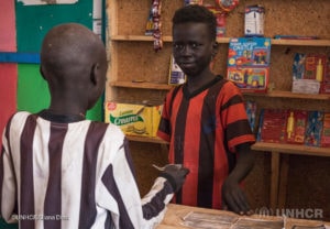 IN THE PHOTO: SOUTH SUDANESE REFUGEE CHILDREN PLAY SHOP IN THE CHILD-FRIENDLY SPACE AT NGUENYYIEL CAMP. HERE, REFUGEE CHILDREN COME AFTER SCHOOL TO PLAY, LEARN AND DO THEIR HOMEWORK. CREDIT: UNHCR/DIANA DIAZ
