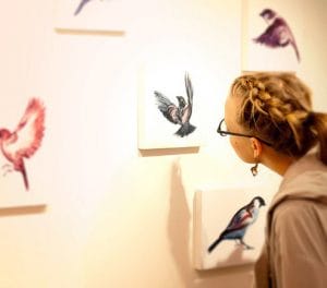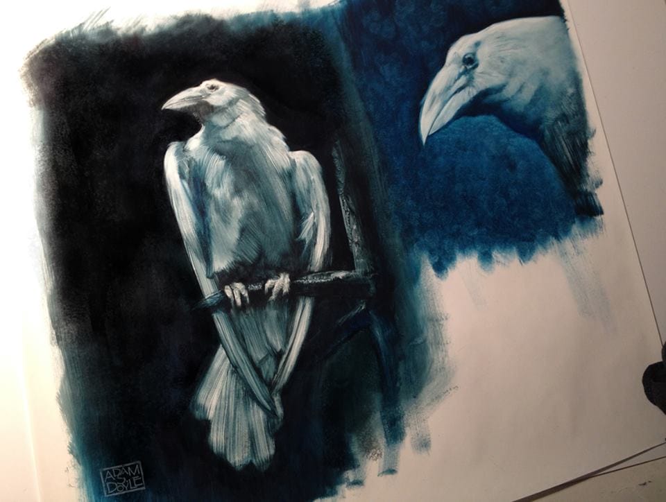 That was one of the first bird series I did, upon the request of a gallery owner in Chelsea, Manhattan’s prominent gallery district. They’ve since been a popular subject they’ve shown in other galleries and cities. Frequently folks get them tattooed as well.