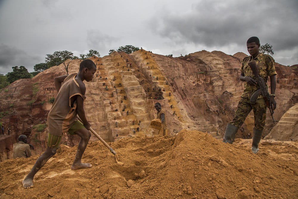 Elvis, a child working in the mine overseen by ex-Seleka soldiers at the Ndassima Gold mine previously run by the Canadian Company AxMin. It was abandoned by them in 2012 when the Seleka came into the country. The Seleka immediately took control and started to mine. They take 15% of all gold mined in the region from local miners. One thousand three hundred miners work around this mine.
