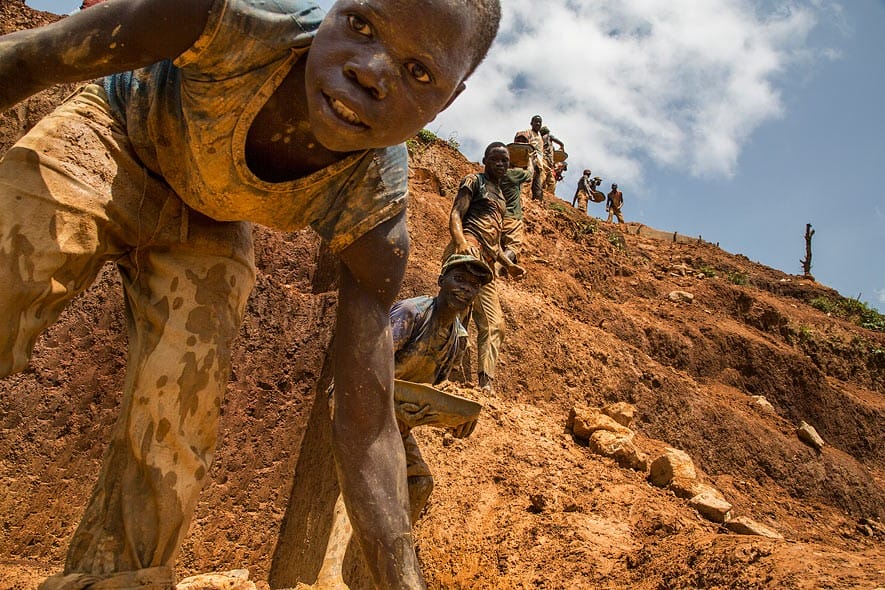 A young miner “Olivier” works with other miners in the mining town of Pluto in Ituri Province to extract rock and sand from a large pit which has taken over a year to excavate. The miners are made up of many different people from all over Congo who come to seek their fortune.