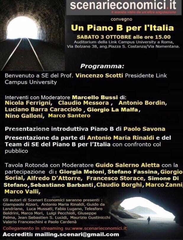 But the fact is this: Plan B was never the work of Savona. Other economists did it, he didn’t. He merely presented it a meeting of experts in Rome in October 2015, as announced on this poster: