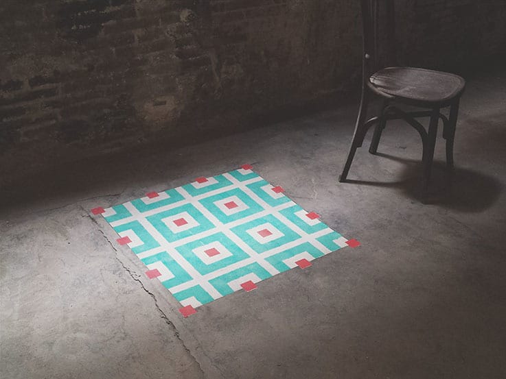 J.R.: In this project, I locate abandoned and grey floors and apply a pattern to them. It moves me to imagine that one day these floors harboured experiences, and were part of someone’s daily life, but that now they are left forgotten. Through my intervention, I allow this sensation to flourish – and I try to offer a testimony of these past lives.