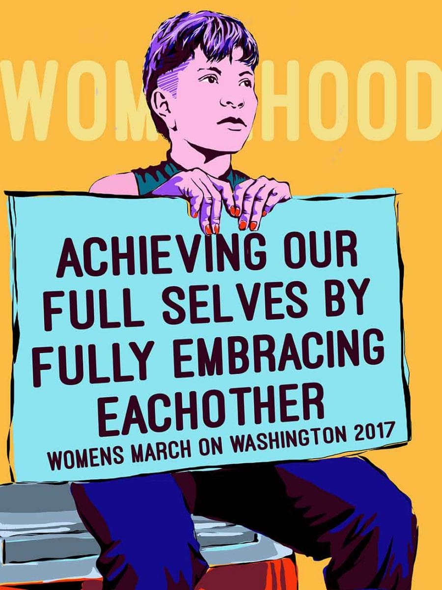 In The Photo: “Warriors of Love, feat. Rhanda Dormeus” by Kate DeCiccio for intersectional representation at Women’s March on Washington D.C. 2017 Photo Credit: Kate DeCiccio