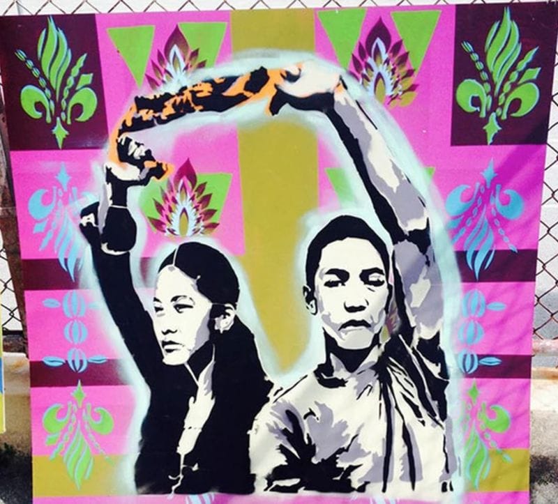 K.D. My process has great variation. Sometimes I just sit and drink coffee and cut tons of small decorative stencils. Sometimes I do a ton of research before making anything. I’ll build idea webs connecting imagery and everything I want to weave together. A lot of my work happens in partnership with many different communities. I do comprehensive idea generation talking to people about how they see themselves, their values, strengths and struggles. I spend as much time in a place as possible to get a feel for details. To create large portraits & digital drawings for posters, I try to work from my own photographs or photos from photographer friends. Once I have the photos I need, it’s a lot of projection, drawing and hours of cutting out stencils. Then, the fun of painting!