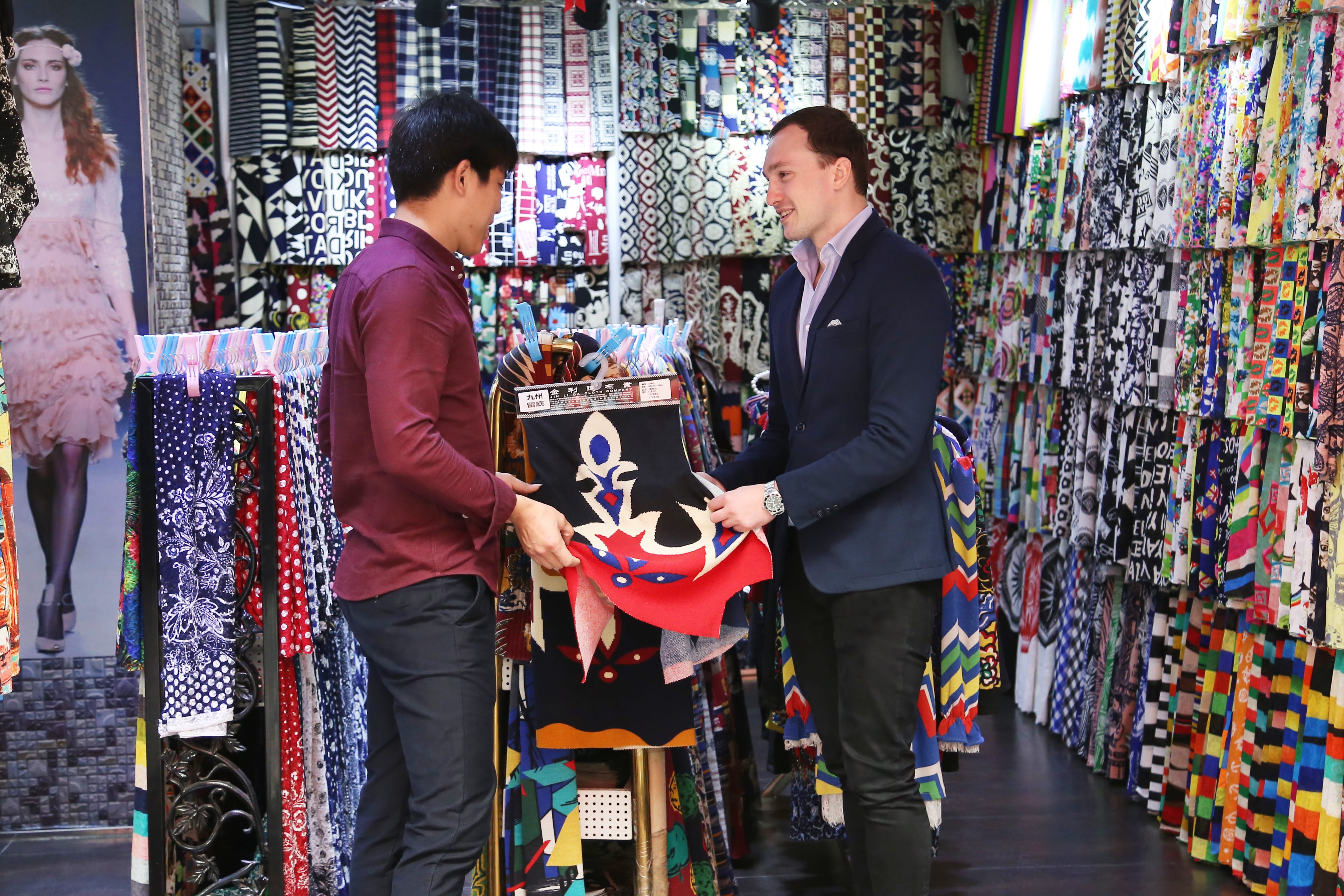 In the photo: CEO Roman Kirsch in China looking at textiles. Photo credit: Lesara