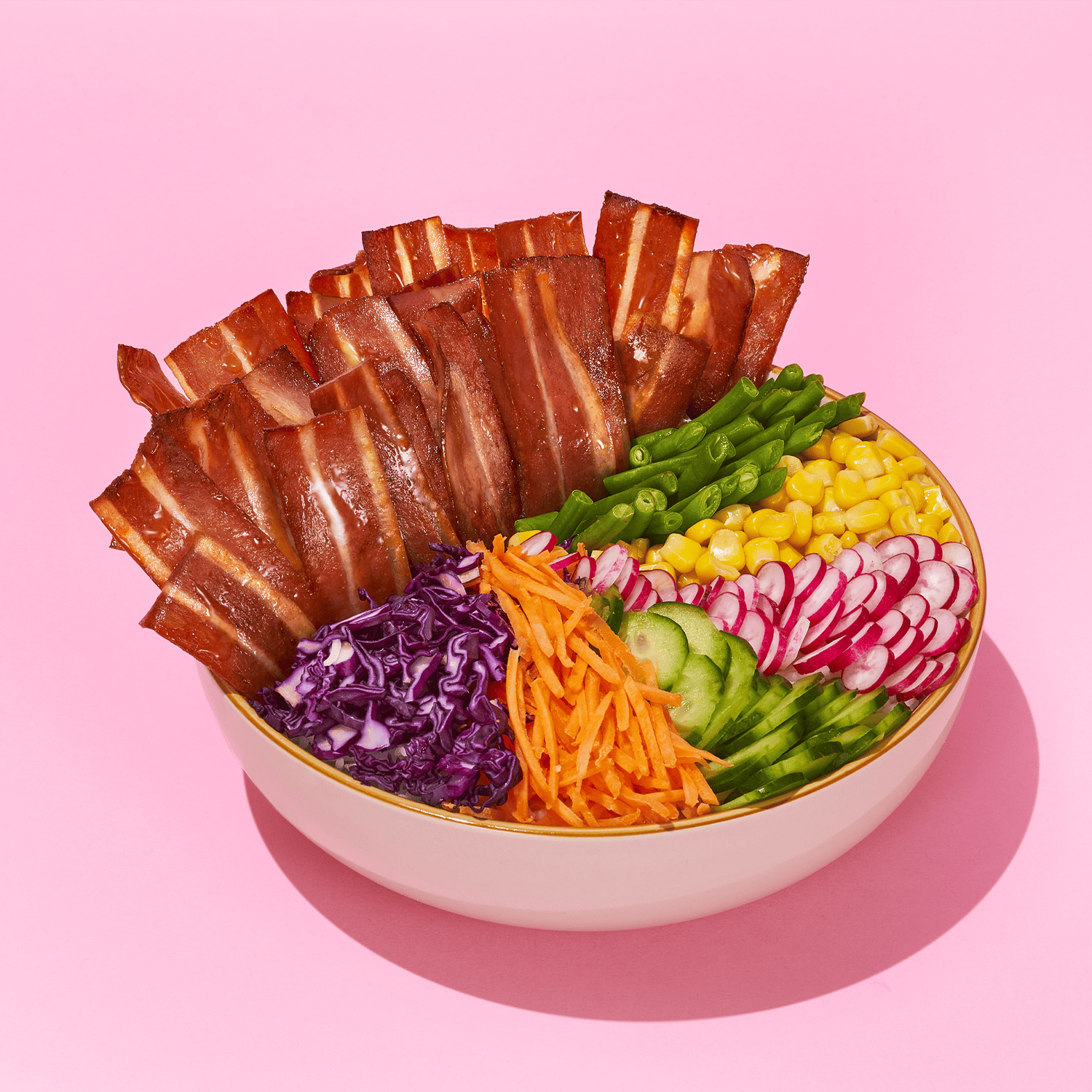 Like Umiami’s chicken and unlike plant-based alternatives on average, the La Vie bacon has seven ingredients: Water, sunflower oil, soya proteins, sea salt and vinegar, natural flavors and coloring.