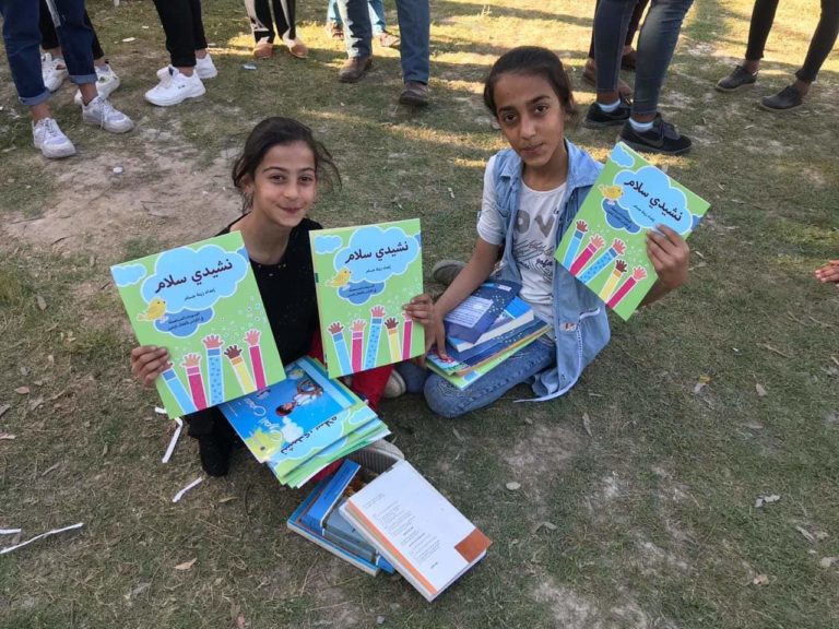 Struck by her own experience in an IDP Camp, Ziena created a children’s songbook; filled with words of peace and ideas that support a non- discriminative, gender equal, and non-violent future for Iraq. Each page of the book is decorated with the artwork of IDP children, which today, Ziena and her team of volunteers take to IDP camps to share. She hopes that music and song will guide these children toward a culture of peace and a future free from divisive ideologies.