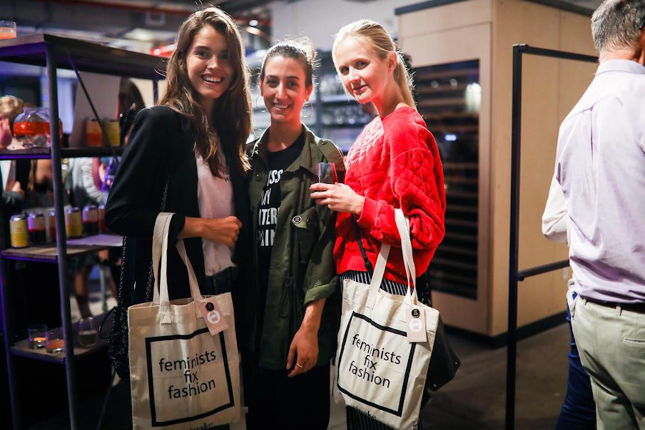 In the photo: Canvas tote bags made by Human-Trafficking Survivors featured at 2017 Spring/Summer New York Fashion Week event Credit: TO THE MARKET