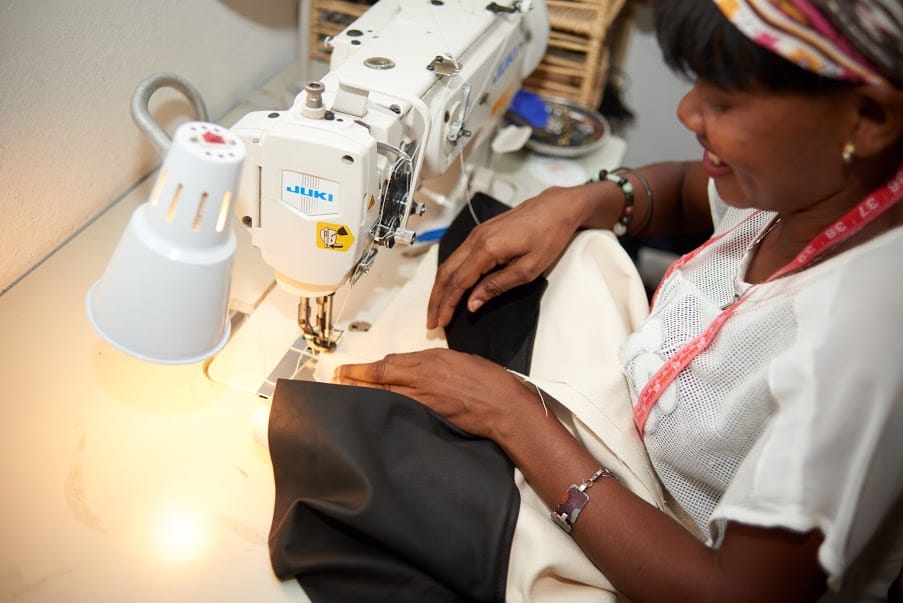 In the photo: One of TTM’s artisan partners in Haiti making our Ethical Leather Tote Bag Credit: TO THE MARKET