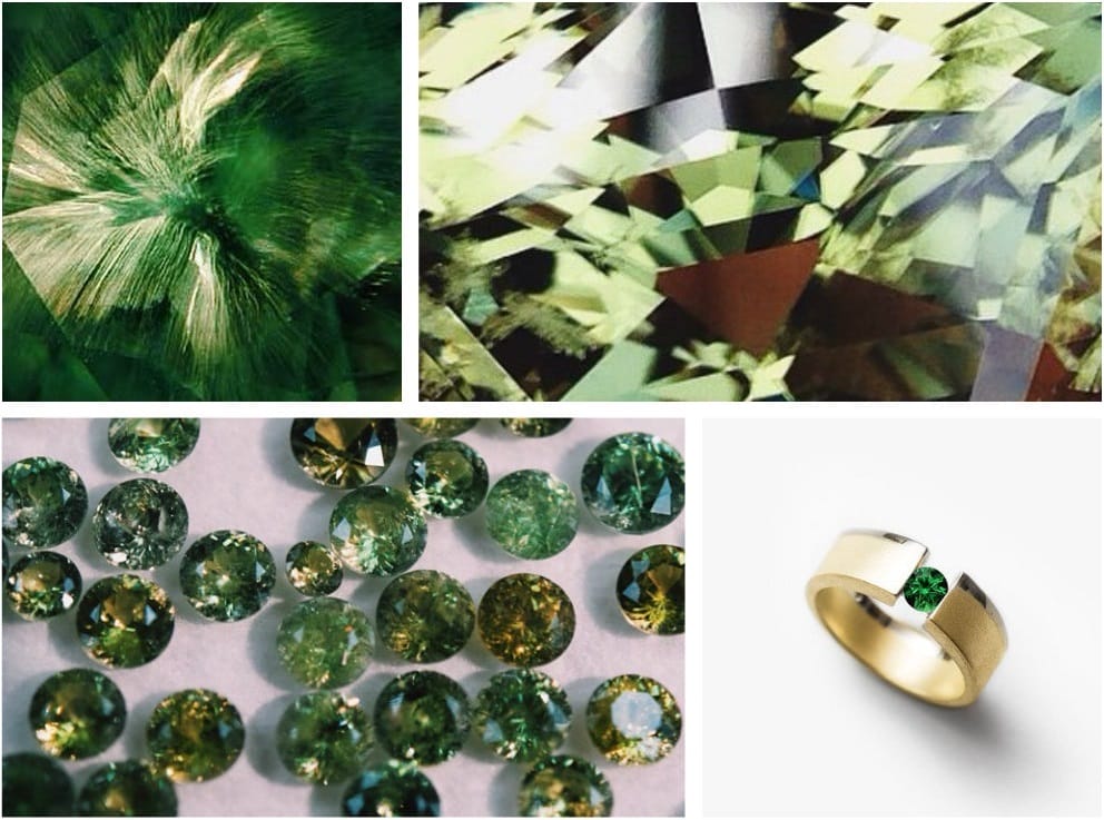 In the photo: Some tourmaline, demantoid tsavorite, all these gemstones end up in the Tonali collection (bottom right)