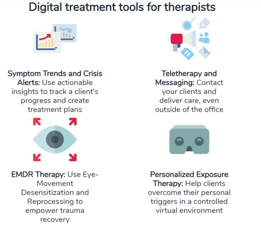 The app also includes some other features such as hotlines and it allows the exercises to be built into a conversational interactive voice assistant that the patients can talk to and from which they can receive guidance based on various situations. We are also developing tools for therapists, the first being a dashboard which includes several analytics drawn from the mobile app being used by the patient. And a little bit down the line that will lead to more clinical research and working with virtual reality exposure therapy that will use data points from the app to make personalized exposure therapy experiences for the patient.
