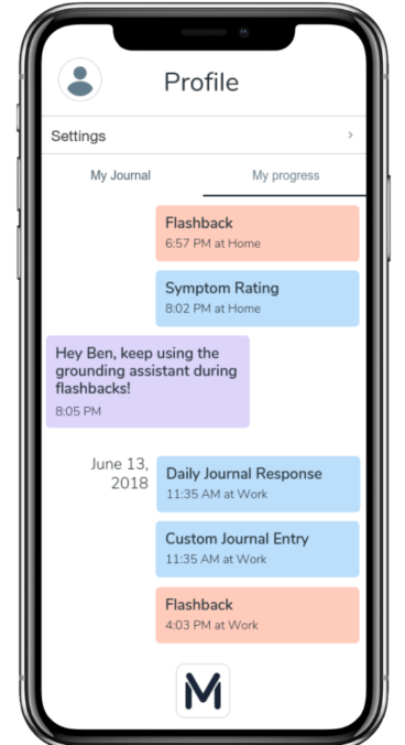 C. I. : One of the most popular apps, is an app called Coach, by the Veterans Administration, that helps facilitate writing journals and teaches patients grounding exercises. What we are looking to do is to create an interactive, voice-activated mobile companion that actually guides people through these exercises instead of just teaching them how to do them.