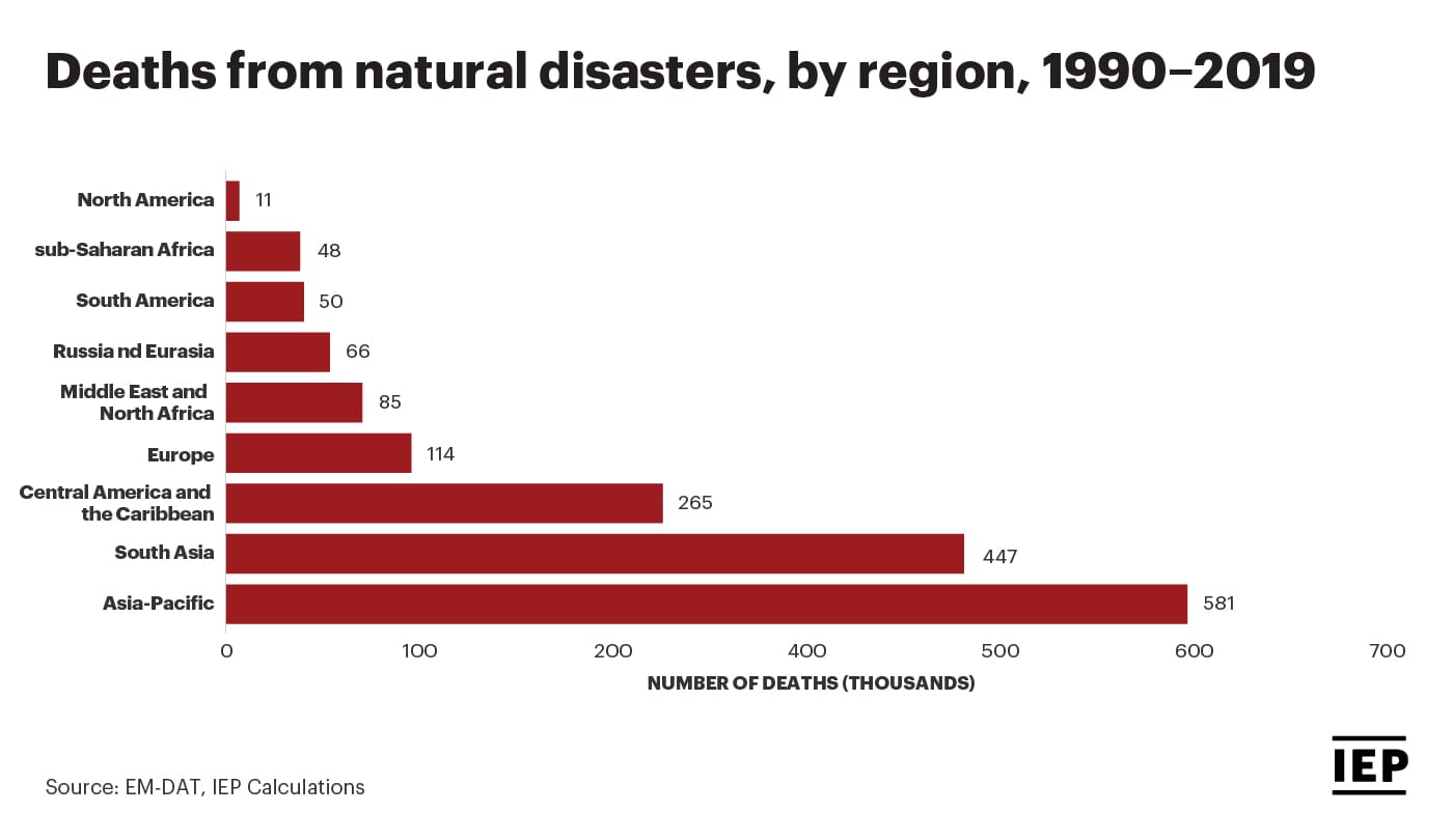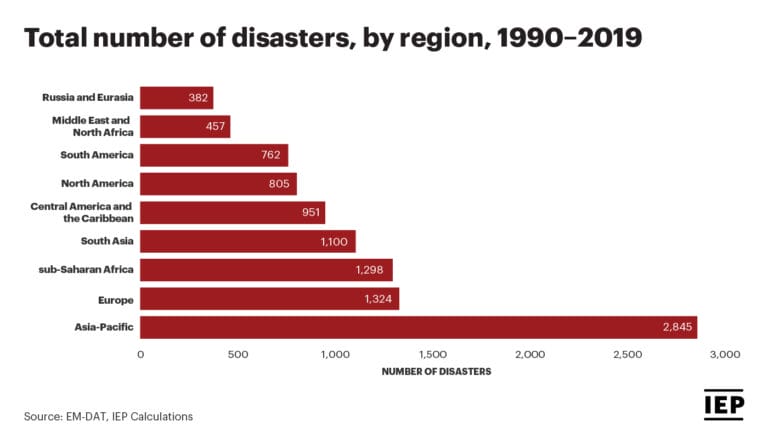 The Asia-Pacific region has suffered the most natural disasters in the last 30 years, and it will witness a major increase in water stress over the next 20 years, according to the 2020 Ecological Threat Register (ETR).