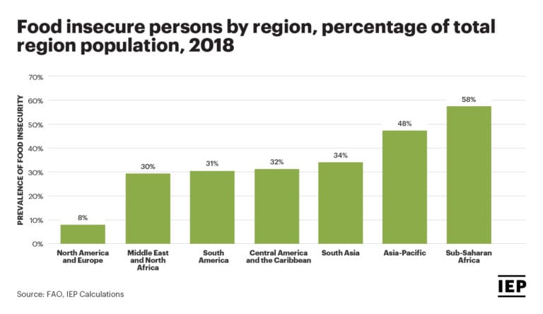 Asia-Pacific has the second highest prevalence of food insecurity with 48% of the population deemed food insecure.
