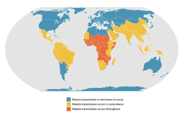 Further, malaria is principally transmitted in tropical and subtropical areas, by a particular mosquito (Anopheles mosquitoes) where it can readily survive and multiply. It is also where the specific malaria parasites can complete their growth cycle in the female mosquitoes (“extrinsic incubation period”).