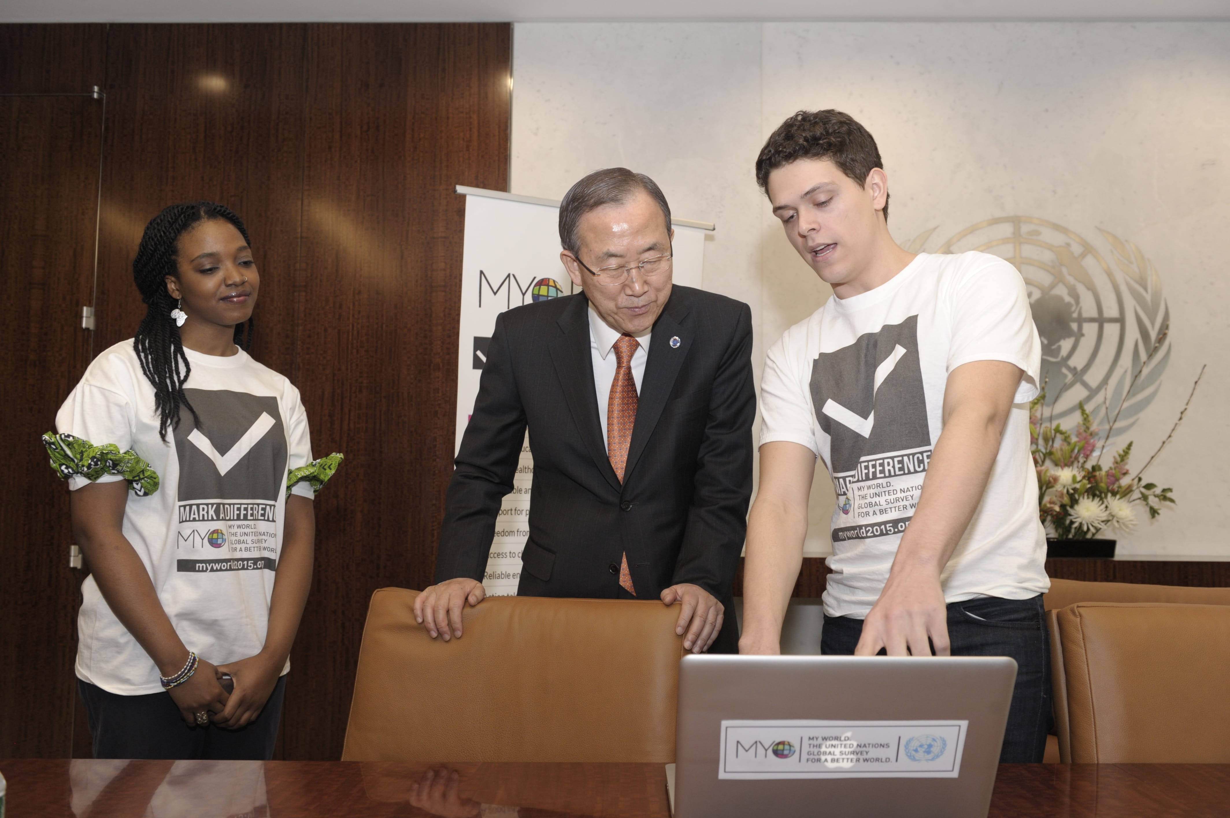 In March 2013, Secretary General Ban Ki-moon launched the MY World advertising campaign “Mark A Difference” and also recorded a YouTube video urging people to vote.