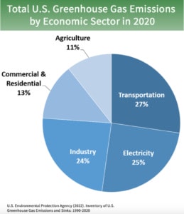 According to the United States Environmental Protection Agency (EPA), “Human activities are responsible for almost all of the increase in greenhouse gasses in the atmosphere over the last 150 years. The largest source of greenhouse gas emissions from human activities in the United States is from burning fossil fuels for electricity, heat and transportation.”