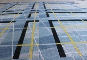 “I took something from a building project as an idea and put it into a carpet. The grids come from a particular relationship of solid and void in the Hagia Sofia Mosquee in Istanbul. I think it is very important for architects to be doing projects that stretch architecture and an architect’s mind out into material, space and time. Similarly, this carpet is a purely abstract idea of space and time. The black grid goes over the white lines and under the yellow lines, it is moving up and down. This is like an abstract painting. The challenge is to perceive the capacity of having something spatial in a single depth with many layers: this is what I call Architecture Abstraction.”