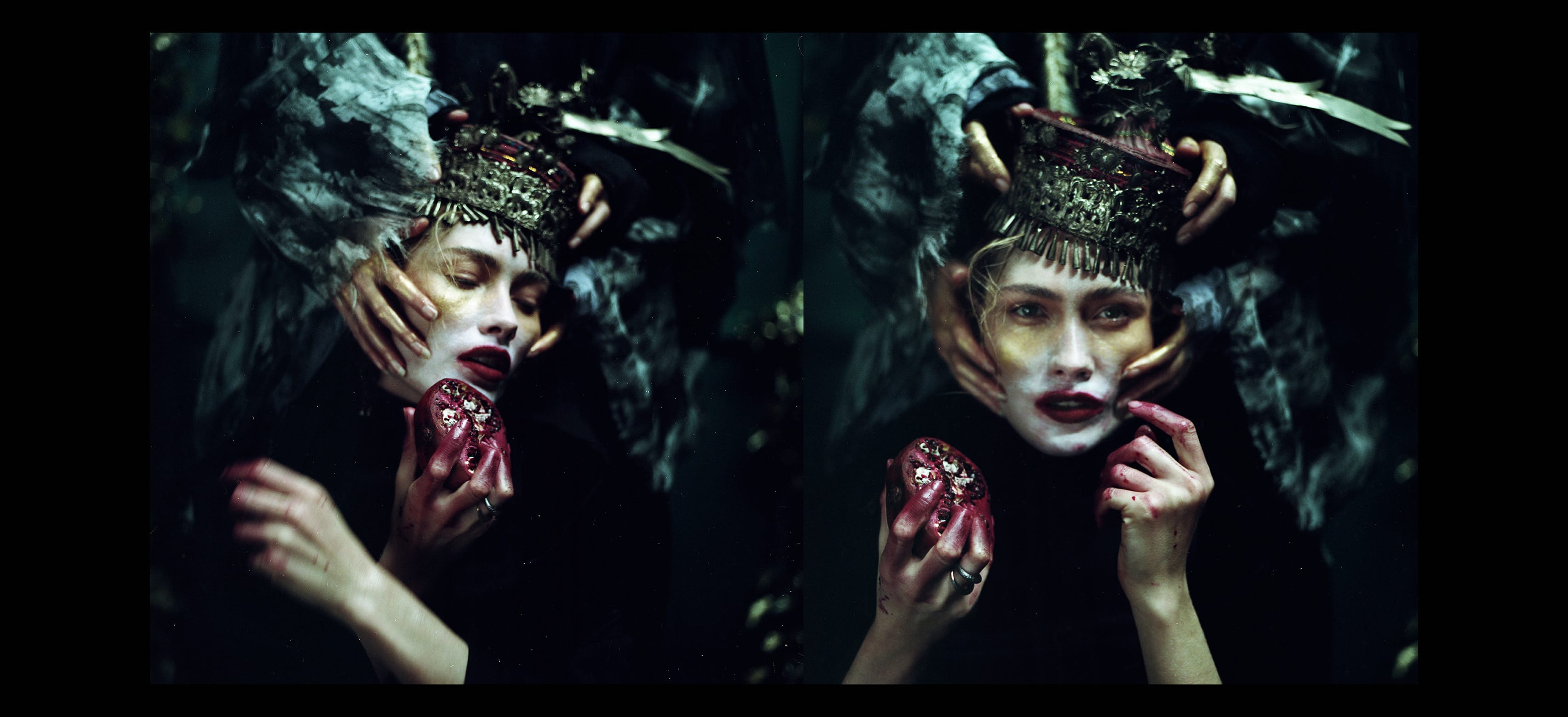 I’ve been following Nicol Vizioli‘s work for quite a while. Her photography has a unique trademark, its sense of theatrical drama has an intense and profound impact that always struck me. Her rigorous use of Hasselblad (analogic medium-format camera), her knowledge and sensitivity to the perfect use of lights, her visual personality together with magical and mythological citations in her work, stands out powerfully in a cold contemporary scenario of digital photographers. I was curious to know who was behind those pictorial photos, and I found a person as unique as her images. Nicole is a young woman with the bright eyes of a curious child. We met in my studio in Rome, and as I was trying to interview her, I realized she was more interested in asking me some questions. With the modesty of a great artist, she kept saying, “I am a photographer by chance. I started as a painter, and then the camera slowly became a tool, which already seems outdated to me, I have yet to experience, I feel the need to express myself in a different way.”